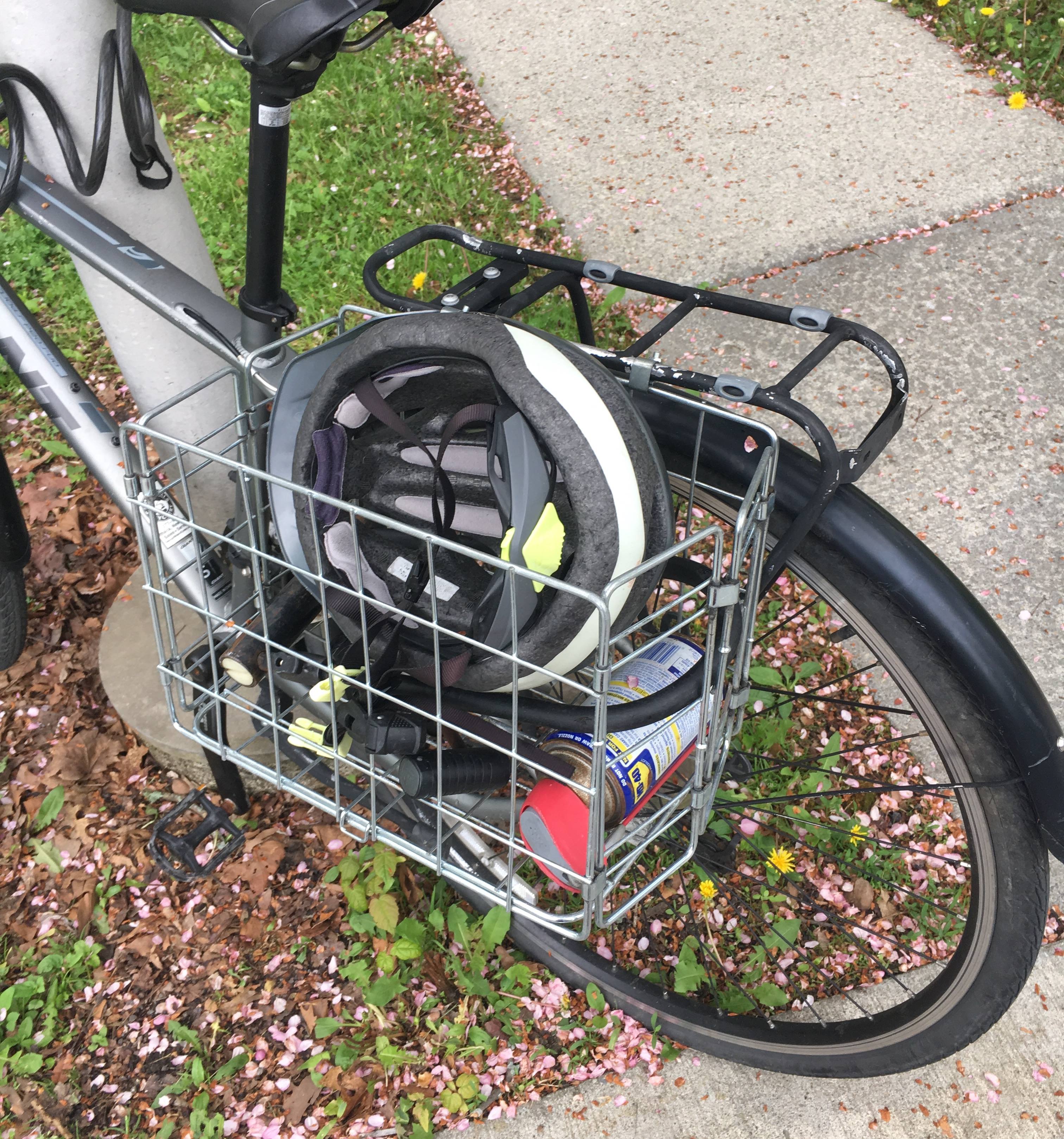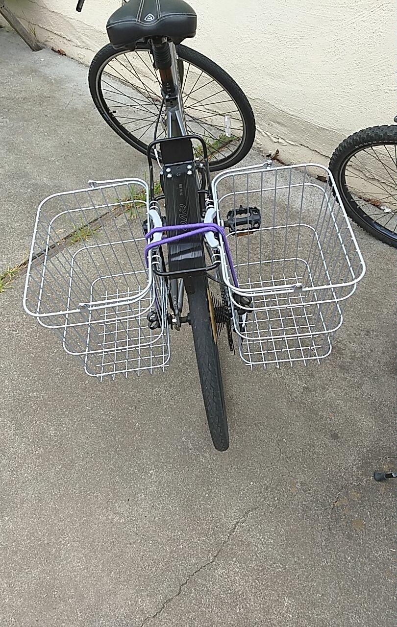 I also have a basket on the other side, to store things that I leave with my bike (pump, locks, helmet, WD-40)