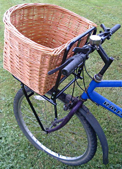 When I got my bike, I immediately started looking into various ways to put your stuff on the bike so you don’t have to carry it on your back while you’re biking. There’s front-baskets, back-baskets, panniers, people even attach milk crates to their bikes with bungee chords.