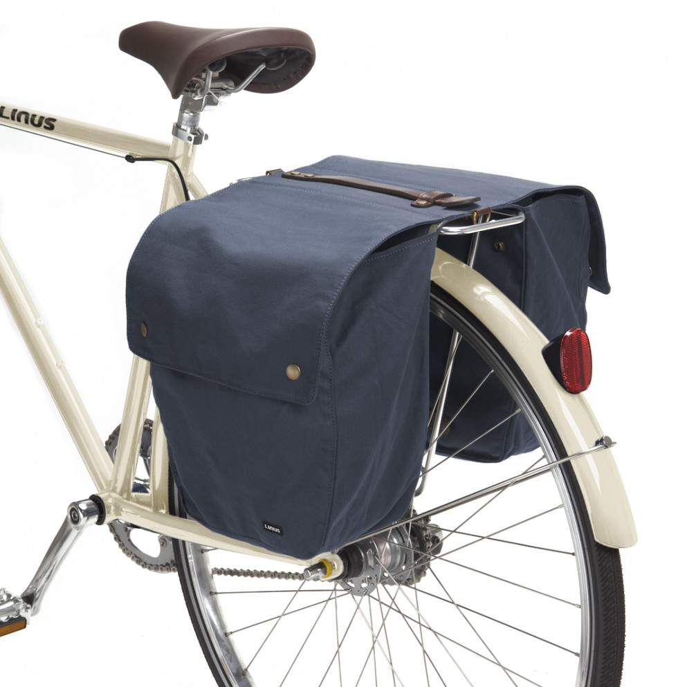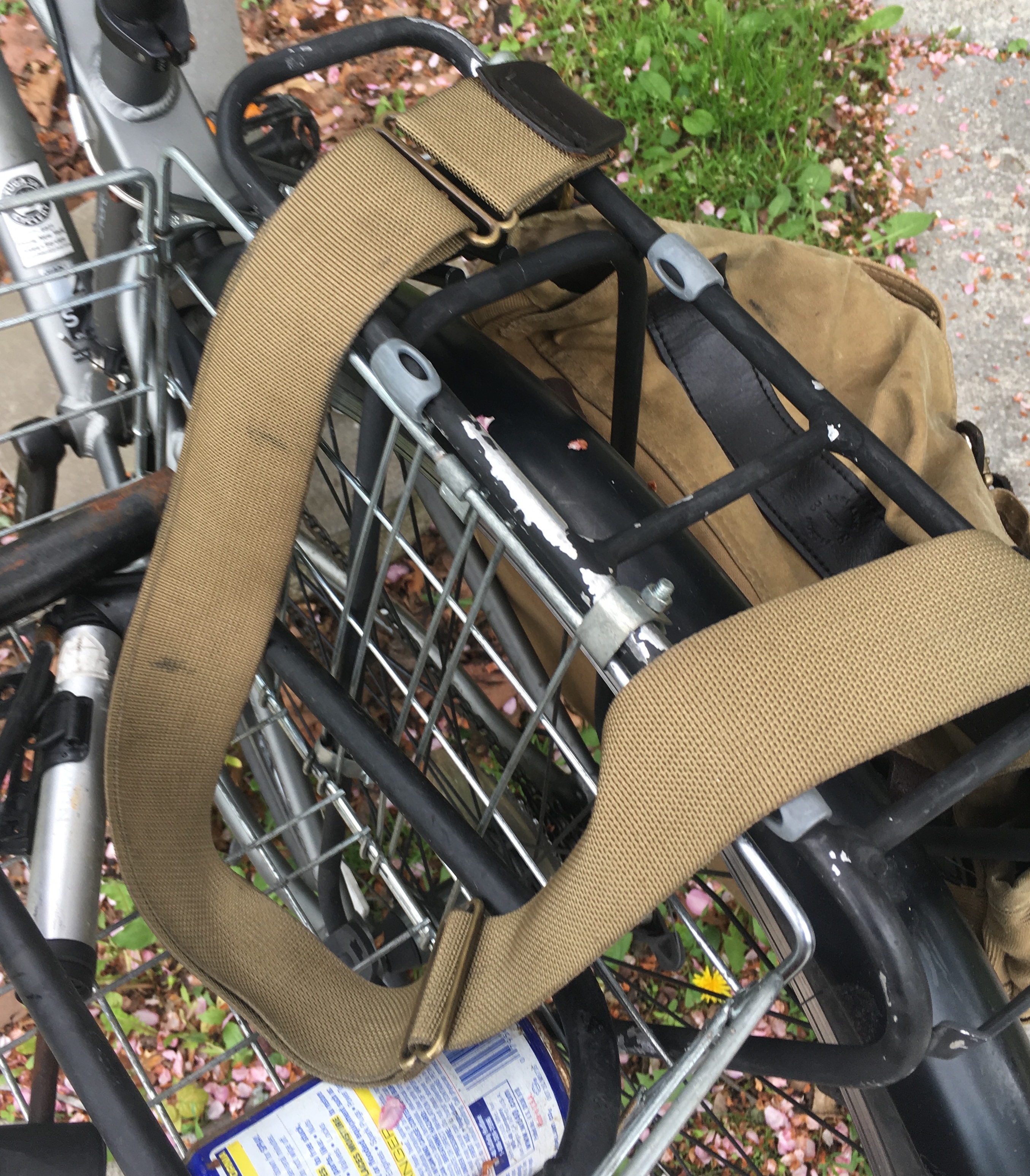 I attached carabiners to either side, and attached that to my bike, and it’s exactly like a pannier.